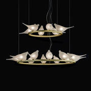 The Light of Love 18 Suspension Lamp by Multiforme Artistic Luxury Lighting is a truly poetic and innovative piece that transcends typical illumination to become a captivating work of art. Designed by Nicola Grandesso for Multiforme's "Progressive" collection, this Light of Love 18 Suspension Lamp is a testament to the brand's ability to blend traditional Murano glass artistry with contemporary design and a deeply emotional narrative. The "Light of Love" collection is inspired by the delicate dance of light and shadow, evoking a sense of intense, burning love and intertwined dreams. The core idea to create a lamp that "would fly, a ring, such a pure shape," imbued with a sense of relaxation and a hint of irony, needing "wings" – which ultimately became the artistic doves. Each Light of Love lamp is a product of Multiforme's commitment to "Made in Italy" craftsmanship, upholding the high standards of Murano glass artistry and traditional techniques passed down through generations. The Multiforme Light of Love 18 Suspension Lamp is more than just a lighting fixture; it's an emotive design piece that transforms an environment, infusing it with refined elegance, a sense of deep passion, and a timeless, artistic presence. Made in Italy Usually ships within 6-8 weeks Free Shipping Product Code: SS3380-12+6 Dimensions: • Height 25 cm (9.8”) • Width 130 cm (51”) • Depht 130 cm (51”) Materials: • Glass Technical Details: Light Source: Bulbs 18 x MAX 25W-G9 Certifications: CLASS E – IP20 General Information Multiforme Lighting stands as a beacon of Italian craftsmanship, offering a harmonious blend of traditional artistry and contemporary design to illuminate and enhance spaces with timeless elegance and bespoke brilliance.
