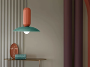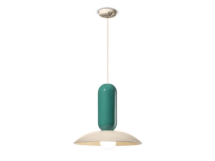 The Pau C 2630 Pendant Lamp from the Ferroluce Decò collection is a captivating piece that embodies the essence of contemporary Italian design and vibrant artistry. Designed by Giorgio Biscaro, this pendant lamp transforms light into a sophisticated decorative element. Pau is a study in form, composed of two opposing ceramic volumes that meet to create a single, striking pendant. This "dialectic of sphericity and brightness" makes it a visually arresting centerpiece. Crafted from premium coloured ceramic, the lamp features a glossy, brilliant finish that accentuates its sleek, rounded silhouette and highlights the meticulous, traditional Made in Italy craftsmanship. Available in playful, yet elegant, dual-tone combinations—such as Turquoise + Pokè Orange, Pokè Orange + Bone White, or Cream + Turquoise—the contrasting colours highlight each segment, lending a contemporary, bohemian touch to your decor. The light source is cleverly positioned to be partially screened by the lower ceramic body, resulting in a soft, inviting, and well-distributed glow. This makes it ideal for ambient illumination over dining tables, kitchen islands, or living room accent areas. With a generous diameter of 40 cm and a height of 36 cm, the Pau C 2630 is perfectly sized to act as a significant statement piece in both residential and boutique commercial settings. Embrace the fusion of masterful ceramic artistry and sleek modern design, allowing the Pau C 2630 Pendant Lamp to enrich your environment with its unique charm and sophisticated calm.