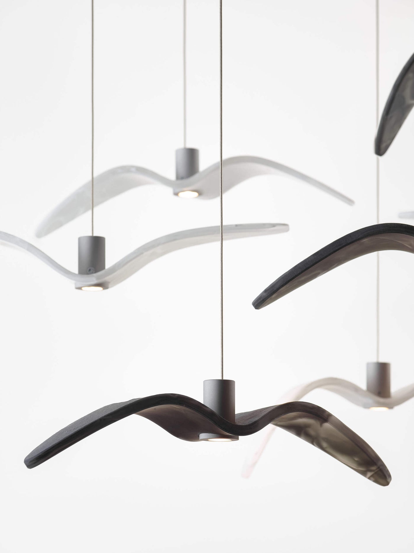 The Night Birds Mini Pendant Lamp by Brokis is a captivating and poetic lighting fixture designed by Boris Klimek. Inspired by the graceful freedom of birds in flight, this pendant light brings a touch of nature's dynamism and enchantment to any interior space. The design captures the essence of birds taking flight, with a stylized silhouette of a bird's wings. This evokes a sense of lightness, movement, and natural beauty. The shade is meticulously crafted from hand-blown glass, a hallmark of Brokis' exceptional craftsmanship. This ensures a unique character for each piece, with subtle variations in texture and form. The glass is available in various elegant finishes, including transparent, smoke grey, and potentially others like opal or dark variants, allowing for different aesthetic expressions and light diffusion qualities. The lamp also features refined metal components, often with anodized finishes in colors like black or silver, providing a sophisticated contrast to the glass.The Brokis Night Birds Mini Pendant Lamp is a distinctive and artful lighting solution that transcends mere functionality. It's a poetic interpretation of nature, brought to life through exquisite hand-blown glass and refined metal detailing, offering a touch of elegance and dynamic beauty to any environment.