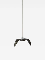 The Night Birds Mini Pendant Lamp by Brokis is a captivating and poetic lighting fixture designed by Boris Klimek. Inspired by the graceful freedom of birds in flight, this pendant light brings a touch of nature's dynamism and enchantment to any interior space. The design captures the essence of birds taking flight, with a stylized silhouette of a bird's wings. This evokes a sense of lightness, movement, and natural beauty. The shade is meticulously crafted from hand-blown glass, a hallmark of Brokis' exceptional craftsmanship. This ensures a unique character for each piece, with subtle variations in texture and form. The glass is available in various elegant finishes, including transparent, smoke grey, and potentially others like opal or dark variants, allowing for different aesthetic expressions and light diffusion qualities. The lamp also features refined metal components, often with anodized finishes in colors like black or silver, providing a sophisticated contrast to the glass.The Brokis Night Birds Mini Pendant Lamp is a distinctive and artful lighting solution that transcends mere functionality. It's a poetic interpretation of nature, brought to life through exquisite hand-blown glass and refined metal detailing, offering a touch of elegance and dynamic beauty to any environment.