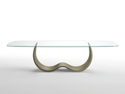 The Alisei Glass Dining Table by Eforma is more than furniture—it's an iconic piece of Italian design that anchors your dining room with sophisticated style. Conceived by designer Andrea Lucatello, the table's namesake and inspiration come from the gentle Alisei trade winds, reflected in its soft, enveloping lines and sense of effortless movement. The distinctive, layered metal base is a work of architectural art, drawing inspiration from the structural complexity of an airplane's wing. This design provides rock-solid stability while maintaining a visually light, flowing aesthetic. The spacious, high-quality crystal glass top offers extreme visual clarity and a luxurious, substantial thickness (15mm on larger models), allowing the stunning base to be admired from every angle. This design table dominates a room not with bulk, but with its refined proportions and minimalist beauty. It seamlessly blends authentic Made in Italy craftsmanship with an innovative, timeless aesthetic. Elevate your home with the Alisei Glass Dining Table—where every meal becomes an experience in understated elegance.