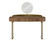 The Lyra Dressing Table (Lyra Vanity) by Eforma is a piece of furniture designed to transform your daily routine into a luxurious ritual. A perfect synthesis of tradition and modern elegance, it embodies the essence of Iconic Luxury Italian Design. The Lyra collection features classic lines reimagined for the contemporary interior. It beautifully recreates the refined make-up station of the past with a distinctly modern and sophisticated style. The elegant structure is supported by distinct painted metal legs (often in bronze) that contrast beautifully with the veneered wooden top. A sophisticated metal frame delicately caresses the top, which is further enhanced by a contrasting lacquered wood profile. The Lyra Vanity version features a comfortable and refined extra-clear bevelled mirror and a central drawer for seamless storage. An optional, elegant leather desk pad is available on request to complete the luxury experience. Designed to be both a functional desk and a glamorous vanity, the Lyra Dressing Table is more than furniture—it is a temple of beauty and a statement of enduring Italian style.