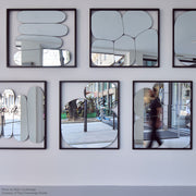 The Morphed Mirror, a 2025 collaboration between Paul Cocksedge and Magis, is a striking exploration of material physics. Part of a collection that reimagines rigid glass as a fluid, malleable surface, the design captures a "frozen moment" of transformation, appearing as if the glass is being gently compressed or "squashed" against the wall. Moving away from traditional geometry, the slightly warped, sculptural shape creates a suggestive contrast between the hardness of glass and the perceived softness of the form. Select models feature horizontal shelves in solid black ash, seamlessly intersecting the reflective surface to hold daily essentials like keys, fragrances, or decor. Most versions include integrated wall plates, allowing the mirror to be hung in up to four different orientations to suit your architectural space. The collection balances high-end industrial materials with artistic finishes to ensure both durability and a premium aesthetic. Sleek black-painted aluminum that provides a sharp, minimalist outline. High-quality back-coated mirror glass equipped with a safety film for added protection. Ideal for entryways, bedrooms, or living areas where you want a functional object that doubles as a piece of contemporary art. "This collection is an exploration of the power of compression—a stillness that suggests movement." — Paul Cocksedge