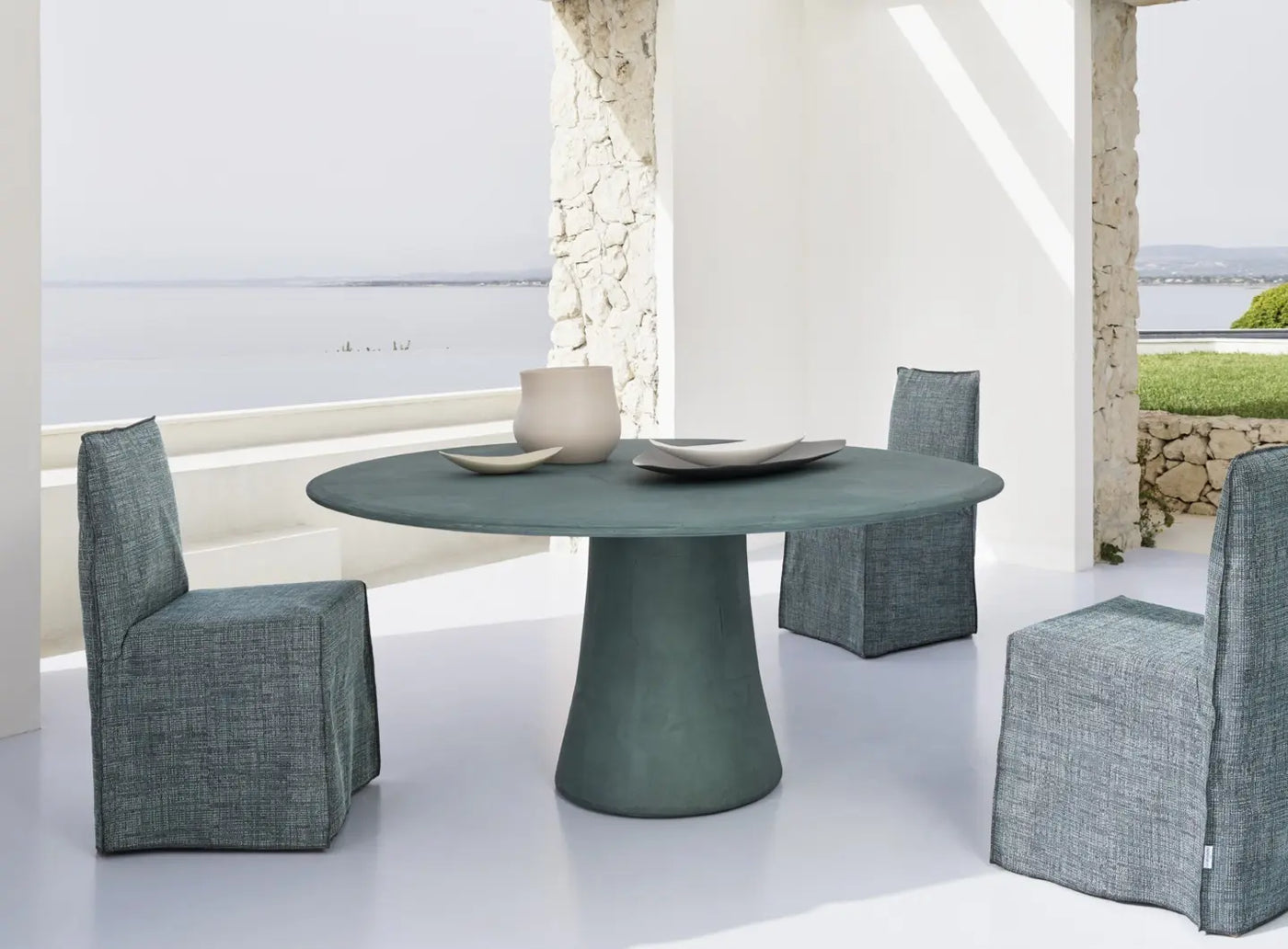 The Gervasoni Noa Round Dining Table, designed by the acclaimed Marco Acerbis, is a masterclass in combining sculptural artistry with functional conviviality. It stands as a testament to Gervasoni's commitment to innovative design and high-quality craftsmanship, particularly for outdoor environments, though its aesthetic appeal makes it suitable for distinctive indoor spaces as well. The defining characteristic of the Noa Round Dining Table is its elegant,sinuous shape. The design creates a dynamic and engaging effect, moving beyond mere utility to become a focal point within any setting. The round tabletop, supported by a substantial yet graceful base, exudes a sense of organic fluidity and invites interaction. Gervasoni elevates the Noa round table through its unique material treatment. The entire structure, typically made from high-density polymer, is finished with a resin-coated application. This process doesn't just provide durability; it imparts a pleasant tactile quality to the surfaces, making the table appealing not only visually but also to the touch. In some versions, a spatulated lime-clay finish is used, further enhancing its sculptural and textured aesthetic, offering rich depth and a bespoke, artisanal feel.