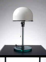 Designed in 1923 by the Swiss visionary Carl Jacob Jucker during his time at the Bauhaus metal workshop in Weimar, the Ju 18 Table Lamp is more than just a light source—it is a manifesto of the "Form Follows Function" philosophy. Often regarded as a sibling to the famous Wilhelm Wagenfeld design, the Ju 18 stands out with its distinct industrial purity and architectural geometry. The Ju 18 table lamp is celebrated for its honest construction. Rather than hiding the internal components, Jucker chose to celebrate them. The transparent glass shaft reveals the central cord, while the heavy glass base provides a grounded, stable counterpoint to the ethereal opal glass dome. This interplay between transparency and solidity makes it a centerpiece of early 20th-century modernism. Features a mouth-blown, acid-etched opal glass shade that diffuses light into a soft, uniform glow. A clear glass tube houses the nickel-plated steel rod, creating a sophisticated layered effect.The wide, circular glass base ensures perfect balance while maintaining the lamp’s minimalist profile. Crafted using polished nickel-plated metal and high-quality clear glass. Whether placed on a minimalist executive desk, a bedside table, or a sideboard, the Ju 18 brings a sense of intellectu al elegance to a space. It is the perfect choice for collectors and design enthusiasts who appreciate the raw, unadorned beauty of the Bauhaus era. "The aim of the Bauhaus was not to propagate any style, system, dogma, formula, or fashion, but simply to exert a revitalizing influence on design."