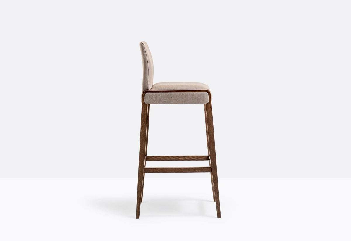 The Jil 526 Bar Stool by Pedrali, designed by Enrico Franzolini, is the epitome of a luxury seating collection distinguished by its refined attention to detail and ergonomic comfort. Part of the elegant Jil family, this barstool features a sophisticated and timeless design with an emphasis on soft, welcoming lines. The structure is crafted from solid oak wood (available in finishes like bleached or tobacco), providing a sturdy and classic foundation. The seat and backrest are molded in fireproof flexible polyurethane and are fully upholstered, offering a high degree of personalization. With a wide selection of fabrics, leathers, or imitation leathers, the Jil 526 Bar Stool can be tailored to perfectly match the aesthetic of high-end bars, restaurants, hotels, or residential kitchen counters. Its precise design ensures excellent ergonomics, providing comfort in both upright and relaxed positions. The Jil 526 Bar Stool is a statement piece, blending superior craftsmanship and luxurious materials to create a functional and elegant design for any sophisticated interior.