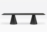 Elevate your dining space with the Ikon Rectangular Dining Table, a masterpiece of minimalist elegance and functional luxury from Pedrali. Designed by Pio and Tito Toso, the Ikon series is defined by its clean, architectural lines and striking material contrast, making it the perfect centerpiece for a sophisticated modern interior. The table's unique design starts with a robust, tapered polyethylene base, which provides exceptional stability while serving as a dynamic, minimalist element. This distinctive conical base is then seamlessly paired with a sleek, substantial tabletop. This combination creates a powerful, sculptural silhouette that maintains a beautiful sense of lightness and refined style. The Ikon is built to impress and crafted with high-quality materials. Top options are available in a variety of finishes, such as laminate, solid wood, or a marble effect, all ensuring longevity and a luxury feel. Whether you choose a round or rectangular top, the Ikon table offers ample space for both intimate family meals and grand entertaining. Its pure, understated aesthetic allows it to integrate beautifully into a wide range of high-end decor styles, from ultra-modern to transitional. The Ikon Rectangular Dining Table is more than just furniture; it's a statement of discerning taste, bringing the best of luxury Italian design directly into your home.