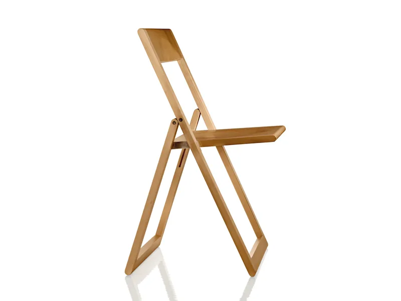 The Aviva Folding Chair by Magis, designed by Marc Berthier is a classic example of functional and elegant Italian design. This chair is renowned for its simplicity, lightness, and ingenious folding mechanism, making it a versatile and space-saving seating solution. Crafted entirely from solid natural beechwood, the Aviva Folding chair showcases the beauty and warmth of the material. Its design is intentionally minimal, focusing on the essential elements of a chair while ensuring comfort and durability. The chair features a smoothly curved backrest that provides good lumbar support and a comfortable seat.The brilliance of the Aviva Foldin chair lies in its effortless folding mechanism. With a simple movement, the chair can be folded flat, making it incredibly easy to store when not in use. This feature makes it ideal for small spaces, extra seating for guests, or for use in areas where furniture needs to be easily moved and stowed away, such as balconies, terraces, or multi-purpose rooms.