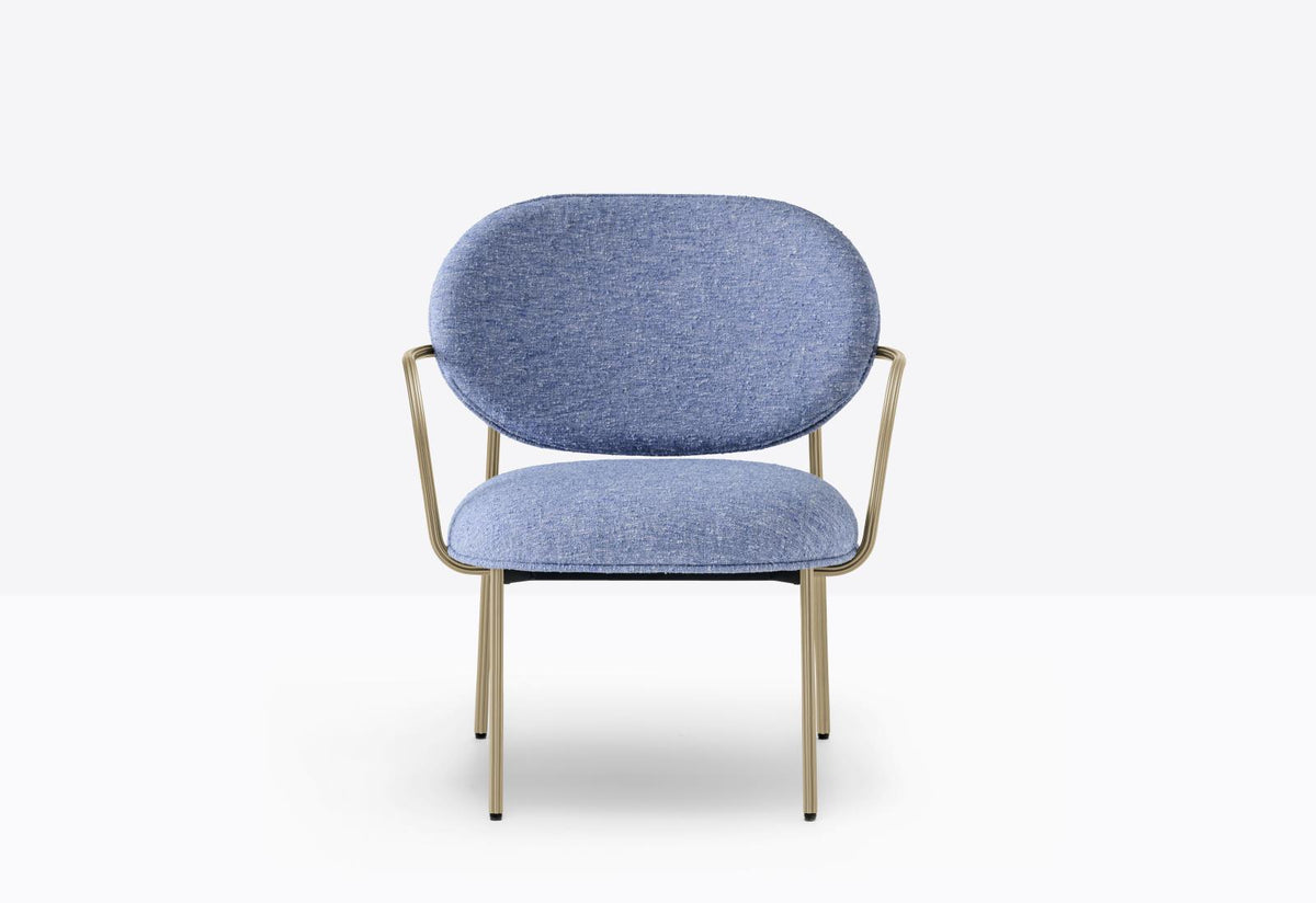 The Blume 2951 Lounge Chair with Armrests, designed by Sebastian Herkner for Pedrali, translates the collection's signature elegance into a form dedicated to relaxation and luxurious comfort. This lounge chair with armrests is an embodiment of Italian-made sophistication, perfect for high-end residential living rooms, hotel lobbies, and executive waiting areas. The chair maintains the iconic design language of the Blume collection. Its slender yet robust structure is defined by an extruded aluminum frame that features a distinctive, sophisticated flower-shaped profile—a subtle, beautiful detail that elevates the entire piece. Designed specifically for unwinding, the Blume 2959 offers a more generous, deeper, and softer seating experience. It features voluminous padding of flexible polyurethane foam across the seat and back, creating an enveloping, sink-in softness that is ideal for extended moments of repose. Reflecting its luxury status, the chair is highly customizable. The elegant aluminum frame is available in desirable finishes such as Brushed Bronze, Brass, Grey, and Black, while the upholstery can be selected from a vast array of high-quality fabrics, velvets, and leathers. With soft, rounded shapes and meticulous attention to detail, the Blume 2951 seamlessly combines the technical precision of its lightweight metal frame with the organic comfort of its upholstery, making it a versatile and visually light feature for any setting. The Blume 2959 Lounge Chair with Armrests is a statement piece that focuses on human well-being, offering enveloping softness and timeless style, making it the perfect sanctuary for luxurious relaxation.
