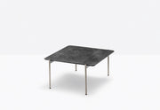 The Blume BLT Coffee Table, designed by Sebastian Herkner for Pedrali, is an elegant complement to the seating collection, perfectly translating its luxurious and sophisticated aesthetic into an exquisite table design. The BLT table is characterized by the distinctive visual language of the Blume family, where meticulous detail is celebrated as a fundamental design element. The table’s structure proudly features the collection's iconic sophisticated flower-shaped profile in the extruded aluminum frame. This signature detail is showcased most dramatically where the frame meets the tabletop, gently protruding beyond the top's perimeter to highlight its precious, sculpted form. Designed to suit the most discerning interiors, the BLT is offered with high-end tabletop finishes, including exquisite natural Marble (such as Rosso Levanto or Fior di Pesco), Composite Marble, and high-performance Solid Laminate or Fenix. This variety allows for unparalleled customization to match any luxurious décor scheme. The BLT is available in a range of sizes and heights, encouraging the creation of dynamic, layered compositions. This adaptability makes it ideal for use as a central coffee table, a sleek side table, or nested in groups in sophisticated lounges, reception areas, and private residences. The aluminum frame is available in multiple elegant finishes, including metallic tones like Antique Brass and Bronze, which further enhance the table's luxurious feel and visual warmth. The Blume BLT Coffee Table is a sculptural, refined piece that combines the industrial strength of metal with the timeless beauty of premium surfaces, making it an essential accessory for a contemporary and sophisticated living space.