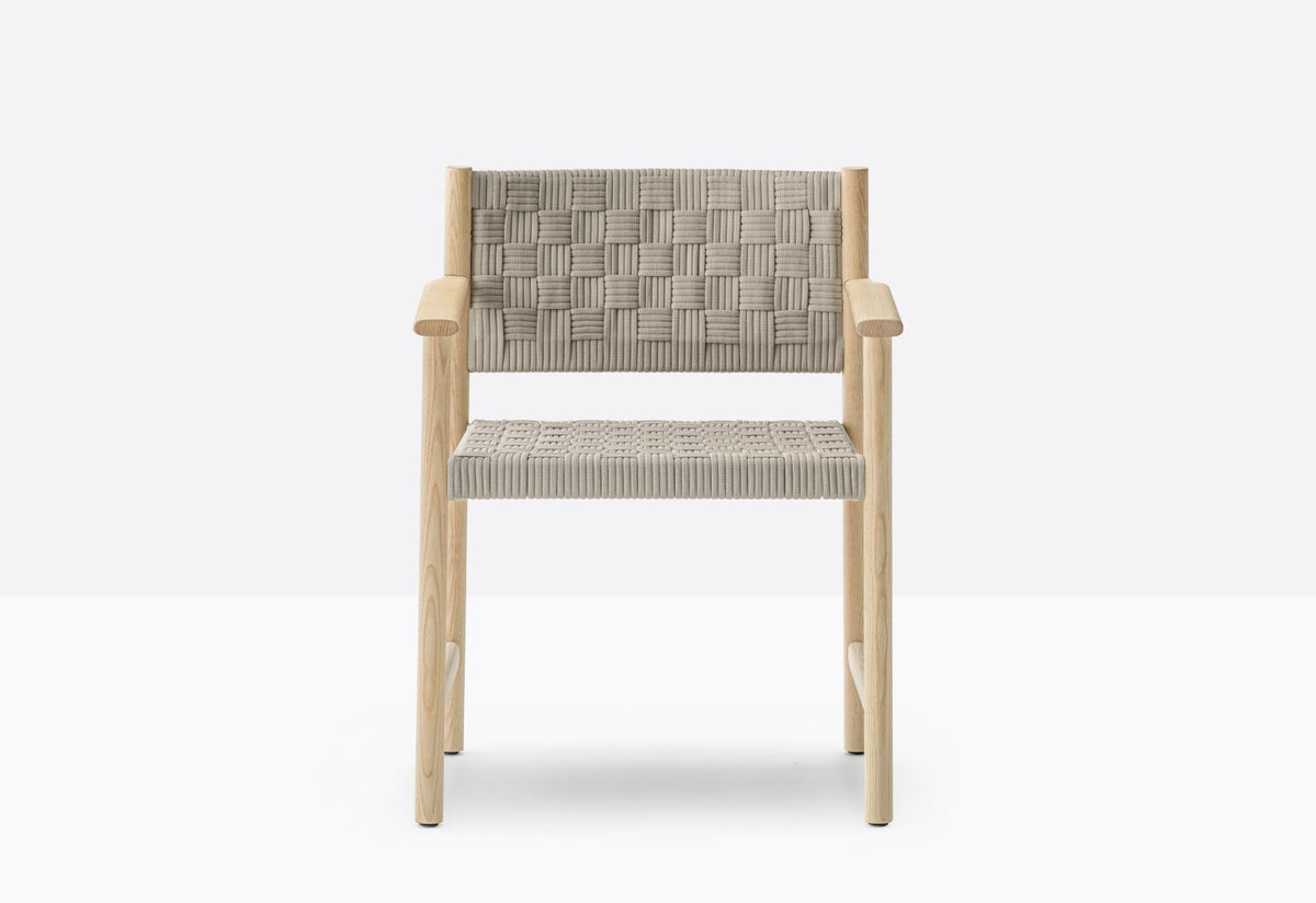 The Griante 3795 Dining Chair with Armrests by Pedrali is a masterful blend of traditional craftsmanship and contemporary industrial design. Conceived by CMP Design, this chair is a testament to Pedrali's commitment to creating elegant, sustainable, and meticulously crafted furniture for luxury interiors. The defining characteristic of the Griante 3795 Dining Chair with Armrests is its exquisitely hand-woven seat and backrest. Made in Italy with a fully recyclable polypropylene yarn belt, the weaving features a three-dimensional texture that not only provides exceptional comfort but also highlights the chair's generous and welcoming proportions. The chair’s frame is constructed from solid ash wood, showcasing the natural beauty and warmth of the material. The FSC® certification guarantees that the wood is sourced from responsibly managed forests, aligning with modern sustainability principles. The chair's cylindrical legs are beautifully turned, while a supporting aluminum frame adds a layer of subtle structural support. The overall design combines the formal rigor of the wooden frame with the lively and irregular texture of the woven seat, creating a sophisticated yet approachable aesthetic. Griante is designed with a sustainable future in mind. Its components are distinct on a practical and perceptual level, allowing for easy disassembly and recycling at the end of its life, a key feature in modern, conscious design. Perfect for a high-end dining room, a boutique restaurant, or a stylish office space, the Griante 3790 adds a touch of authentic Italian elegance. It is a piece that promises not only comfort but also a story of craftsmanship, quality, and a commitment to responsible design.