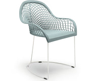 Imagine a chair that's both strikingly modern and incredibly inviting. The Guapa Dining Chair with Armrests achieves this with its distinctive design, primarily featuring a curved metal frame that flows gracefully, creating a sense of lightness and elegance. This frame, often finished in lacquered colors or chrome, provides a strong yet visually delicate structure. What truly sets the Guapa Dining Chairwith Armrests apart is its leather or hide upholstery. Rather than a solid, flat surface, the seat and backrest are often crafted with intricate woven or laser-cut patterns. This not only adds a unique textural element and visual interest but also allows for a subtle play of light and shadow. You might see geometric shapes, delicate perforations, or even more organic, flowing designs depending on the specific model. In essence, the Guapa Dining Chair with Armrests by Midj is a statement piece that beautifully blends innovative materials, meticulous craftsmanship,and a distinctly contemporary aesthetic. It's a chair that invites you to linger at the table, appreciating both its form and its function.