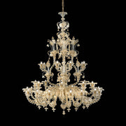 The Nabucco Chandelier by Multiforme Artistic Luxury Lighting is a majestic and harmonious piece that perfectly encapsulates the splendor and luxury of 18th-century Venice. A prominent fixture within Multiforme's "Timeless" collection, this Rezzonico-style chandelier is more than just a source of light; it's a grand statement piece, brimming with rich, handcrafted details, designed to create an unforgettable atmosphere of timeless elegance and grandeur.The Nabucco chandelier draws its inspiration directly from the Golden Age of Murano glass tradition in the 18th century. This period was renowned for establishing a distinctive and opulent style. Its design skillfully balances voluminous forms with exquisite embellishments, recalling the grandeur and refinement that once graced Venetian palaces. A defining characteristic of the Nabucco Chandelier collection lies in its exuberant decorations, all meticulously handcrafted and flawlessly attached to the structure. These include a variety of traditional Murano glass elements such as "cornucopie" (cornucopias), "pinnacoli" (pinnacles), and delicate pendant elements. Among these, the delicate flowers in white and pure gold are particularly striking, adding a touch of ethereal beauty and intricate detail. Every single component, from the gracefully blown glass arms to the ornate decorative elements, showcases the unparalleled artistry and precision of Murano glass masters. This dedication to detail ensures that each Nabucco chandelier is a true masterpiece of light.