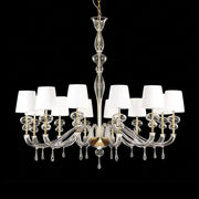 The Palladium 12 Chandelier by Multiforme is a captivating and elegant lighting fixture that embodies the exquisite craftsmanship and timeless beauty of Murano glass. Hailing from the renowned Veneto lighting district, Multiforme is celebrated for its dedication to "Made in Italy" excellence, and the Palladium collection is a testament to this commitment. The chandelier's design emphasizes a gentle, suffused light, emanating from within elegant pleated organza lampshades. This creates a warm and inviting ambiance, perfect for sophisticated interiors. While often a statement piece, the Palladium collection is designed to be versatile. It can be a single or multi-stage chandelier, making it suitable for a variety of spaces, from grand ballrooms and elegant dining rooms to luxurious living areas. It's also available in different sizes, including impressive multi-tiered configurations for larger projects. the Multiforme Palladium 12 Chandelier is more than just a light fixture; it is a work of art, designed to illuminate and elevate any setting with its handcrafted Murano glass, refined details, and customizable elegance.