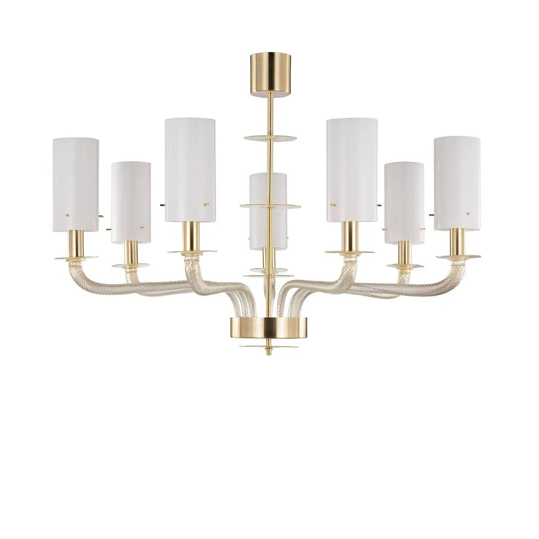 The Tribeca 7-Lights Chandelier by Multiforme Artistic Luxury Lighting isn't just a light fixture; it's a modern masterpiece that elegantly reimagines the classic chandelier. This sophisticated Tribeca 7-Lights Chandelier piece beautifully blends contemporary design with exquisite Murano glass craftsmanship, showcasing Multiforme's knack for transforming traditional forms into impactful lighting art. Drawing inspiration from classic Venetian chandeliers, the Tribeca introduces fresh structures and elements for a distinctly modern aesthetic. Its design truly celebrates the beauty of handmade artistic glass, viewed through a contemporary lens. The white Murano glass diffusing elements provide a soft, even illumination, highlighting the inherent beauty and artisanal quality of the material. Every component of the Tribeca chandelier is meticulously balanced, resulting in a Harmonious and refined design. This keen attention to detail ensures the piece is more than just a light source—it's a true work of art. Destined to be a prominent feature in any space, its flawless execution, using traditional manufacturing techniques, ensures its value is appreciated even when unlit, functioning as a captivating sculptural piece.