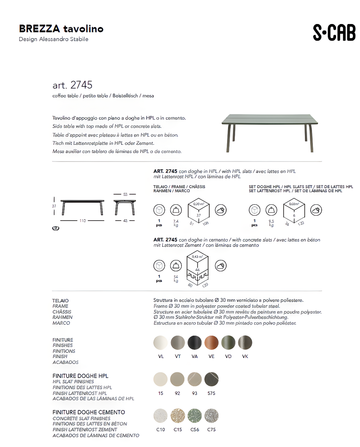 The Brezza Low Rectangular Coffee Table by Scab Design is a stylish and functional addition to any outdoor living space. Features a minimalist aesthetic with clean lines and a rectangular shape. Crafted from high-quality materials, often including a sturdy metal frame and a durable tabletop (like concrete or HPL). Can be used as a side table for drinks, snacks, or decorative items. Designed to perfectly complement other pieces in the Brezza collection, such as the armchairs, sofas, and lounge chairs. The Brezza Low Rectangular Coffee Table is a stylish and practical piece that enhances the look and functionality of any outdoor seating area.