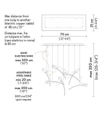 Canopy: 70x25 cm (each bloom Ø5 cm x h. 40 cm - max. distance tulip to another 80 cm)