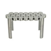 The Mousse Console by Riluc, designed by Toni Grilo, is part of the innovative Mousse collection. This console showcases a sleek and versatile design, crafted from premium stainless steel. It is available in a variety of luxurious finishes, including brushed and bright options in titanium, gold, brass, chocolate, and copper. With its elegant and adaptable design, the Mousse Console is a perfect blend of engineering and artistry, making it a timeless addition to any space. The Mousse Console by Riluc is a versatile piece of furniture that can be used in various settings, such as a stylish console table to display decorative items, books, or plants in your living room, perfect for creating an elegant first impression with a functional surface for keys or mail in your entryway.