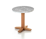 The Gervasoni Jeko 40/41 Side Table is a stylish and distinctive piece of furniture that embodies a colonial aesthetic with an exotic touch. Designed by Paola Navone for Gervasoni, it is part of the broader Jeko collection, known for its use of reclaimed teak and natural materials. The Gervasoni Jeko 40/41 Side Table is a refined and environmentally conscious piece of furniture. Its blend of reclaimed teak with a luxurious marble or modern concrete top makes it a versatile addition to both indoor and outdoor spaces. The colonial-inspired design with an exotic twist adds character and sophistication to any setting. It's a perfect choice for those who appreciate unique materials, sustainable practices, and timeless design. The Jeko 40/41 Side Table is designed in a colonial style with exotic inspiration. It features a central leg and base made of ECOTeak, a material derived from repurposed teak beams and elements that have been repaired using recycled wood. The Jeko Side Table is adorned with a white Carrara marble top, creating a visually striking contrast between the two different materials. The Jeko 40/ 41 Side Table is available in two sizes.