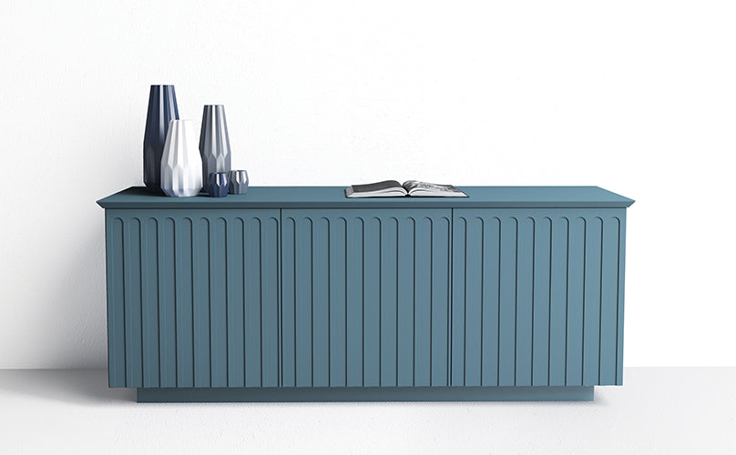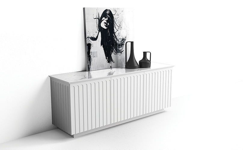 The Athena Sideboard by Minottiitalia is a poetic fusion of classic inspiration and avant-garde execution. Named after the Greek goddess of wisdom and craft, this piece stands out for its bold, three-dimensional facade that transforms a functional storage unit into a rhythmic work of art. The hallmark of the Athena collection is its sculptural door design. Rather than a flat surface, the doors feature a series of geometric, raised panels that create a deep sense of relief. The alternating heights of the panels create a "checkerboard" of light and shadow. As the sun moves across the room, the sideboard's appearance shifts, highlighting different facets of the Italian lacquer. Minottiitalia’s master craftsmen ensure that the geometric pattern flows perfectly across the breaks between the doors, maintaining the illusion of a single, hand-carved block of material. Athena Sideboard is designed to be a centerpiece. Its strong personality allows it to anchor a room, working beautifully as a dining room buffet or a sophisticated hallway console. Every Athena sideboard is a testament to the "Made in Italy" commitment to quality materials and silent, high-performance hardware.