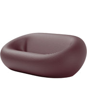 The Nami Sofa from Qeeboo, designed by Stefano Giovannoni, is an extraordinary piece characterized by its fluid and organic form. Its design features a linear central section that gracefully transitions into rounded ends, creating a visually appealing and inviting silhouette reminiscent of gentle waves – a nod to its Japanese name, "Nami," meaning wave. The sofa boasts a contemporary and sculptural design with a focus on smooth curves and generous roundness. The concentric ring pattern that radiates outwards from the center adds a distinctive textural element. Typically made from recyclable polyethylene, the Nami Sofa is durable, weather-resistant, and easy to clean, making it suitable for both indoor and outdoor use. Some versions are also available in a mix of recycled materials, showcasing Qeeboo's commitment to sustainability. The sofa comfortably seats 2-3 people. Notably, the design incorporates two channels in the middle section to facilitate water drainage, a practical feature for outdoor settings.The Nami Sofa is more than just a piece of furniture; it's a design statement that blends artistic form with practical functionality, embodying Qeeboo's playful and innovative approach to product design.