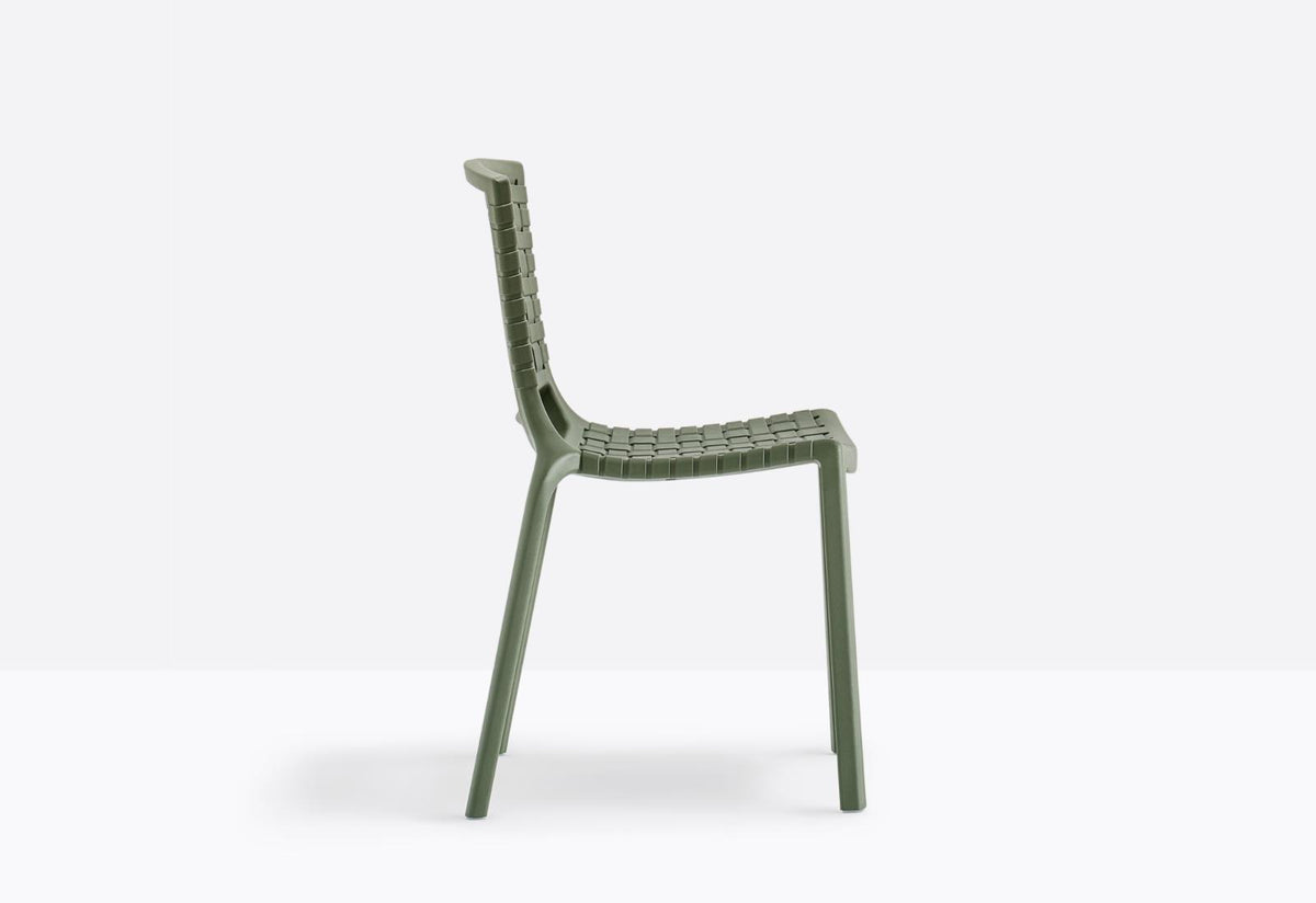 The Tatami 305 Stackable Dining Chair, designed by Claudio Dondoli & Marco Pocci for Pedrali, is a lightweight, durable, and versatile seating solution created to embrace the enjoyment of open spaces. The defining feature is the shell's characteristic interweaving pattern, which is both visually distinctive and functional, promoting air circulation and a sense of relaxed comfort. The chair is constructed from polypropylene loaded with glass fibers and injection molded using gas air moulding technology. This material choice makes the chair: Strong enough for contract use, yet easy to move. Color-safe and resistant to deterioration from sunlight. Fully suitable for outdoor environments and resistant to rainwater. The chair upholds Pedrali's commitment to high-quality, 100% recyclable, Italian manufacturing. The Tatami 305 Stackable Dining Chair is highly functional, designed to be stacked up to 10 pieces, making it an exceptionally practical choice for optimizing space in cafés, terraces, hotel poolsides, and large contract projects. The wide, enveloping seat and armrests, combined with the ergonomic weave of the shell, guarantee adequate comfort for promoting relaxation and well-being. Available in a wide selection of colors (such as White, Anthracite Grey, Red, Sand, Green, and Brown) to seamlessly integrate into any interior or exterior design scheme. The Tatami 305 Stackable Dining Chair is the perfect fusion of luxury design flair and commercial-grade outdoor functionality.