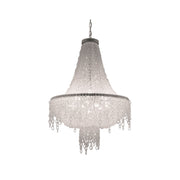 The Eva 7606 Chandelier is a timeless piece of jewelry that exudes elegance and grace. Its metal structure is adorned with crystal chains that flow seamlessly around it. The Eva 7606 Chandelier is meticulously crafted by skilled artisans who carefully weave textures onto it and patiently glue each ring and pearl. The attention to detail in the creation of this pendant is what makes it stand out as a truly unique piece.