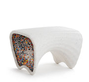 The In-Side Pouf by Magis, designed by the renowned Thomas Heatherwick is a striking and innovative piece that embodies a commitment to sustainability and unique aesthetics. This In-Side Pouf is part of the In-Side collection, which explores the potential of recycled plastic waste in creating visually compelling and functional outdoor furniture.The key design concept behind the In-Side Pouf lies in revealing the unexpected inner beauty of the recycled material. It is crafted using a blend of post-consumer recycled polyethylene (30%) and post-industrial recycled polyethylene in multicolored flakes. Through a rotational molding process, the exterior of the pouf presents a more uniform appearance, while the sides reveal a vibrant and unique interior characterized by irregular, multicolored patterns reminiscent of paint splashes or confetti. This dual personality makes each In-Side Pouf a one-of-a-kind piece, with variations in color and pattern.Designed for both comfort and durability, the In-Side Pouf features generous dimensions and an ergonomic form, making it ideal for relaxing in outdoor spaces such as gardens and terraces. The robust polyethylene material is well-suited to withstand various weather conditions.