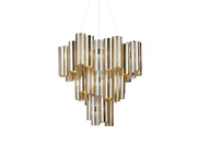 The La Lollo Suspension Chandelier by Slamp is a bold and glamorous lighting centerpiece designed by Lorenza Bozzoli. Inspired by the elegance of 1950s movie stars and theatrical spotlights, this chandelier features a circular arrangement of technopolymer cylinders crafted from Slamp’s patented Lentiflex® and Opalflex® materials. Each cylinder reflects light with prismatic brilliance, metallic accents, or soft gradients, depending on the chosen finish. Encircling a central integrated LED ring, La Lollo Suspension Chandelier delivers warm, energy-efficient illumination while making a dramatic visual statement. Available in White, Pewter, Gold Gradient, and other finishes, it’s offered in multiple sizes to suit both intimate and grand interiors. The chandelier’s lightweight, unbreakable structure and modular design make it ideal for residential, hospitality, and retail spaces seeking a sculptural focal point.