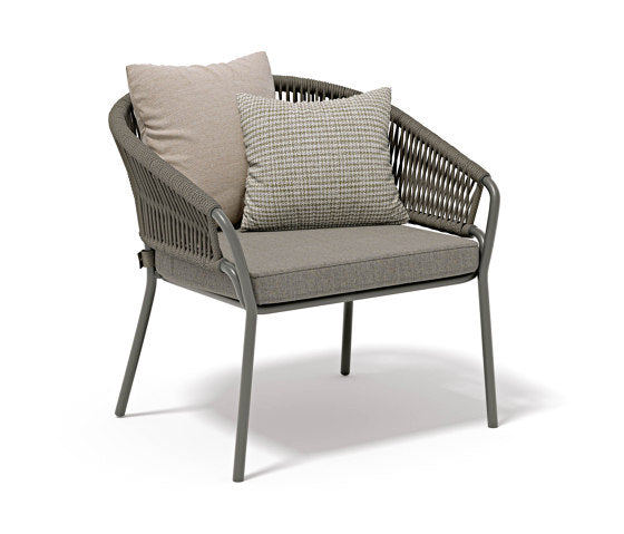 Pleasure 2.0 Lounge Armchair | Atmosphera Soul of Outdoor - Round Beige Rope | White Aluminium / CAT. A Tempotest and Sunbrella Fabric