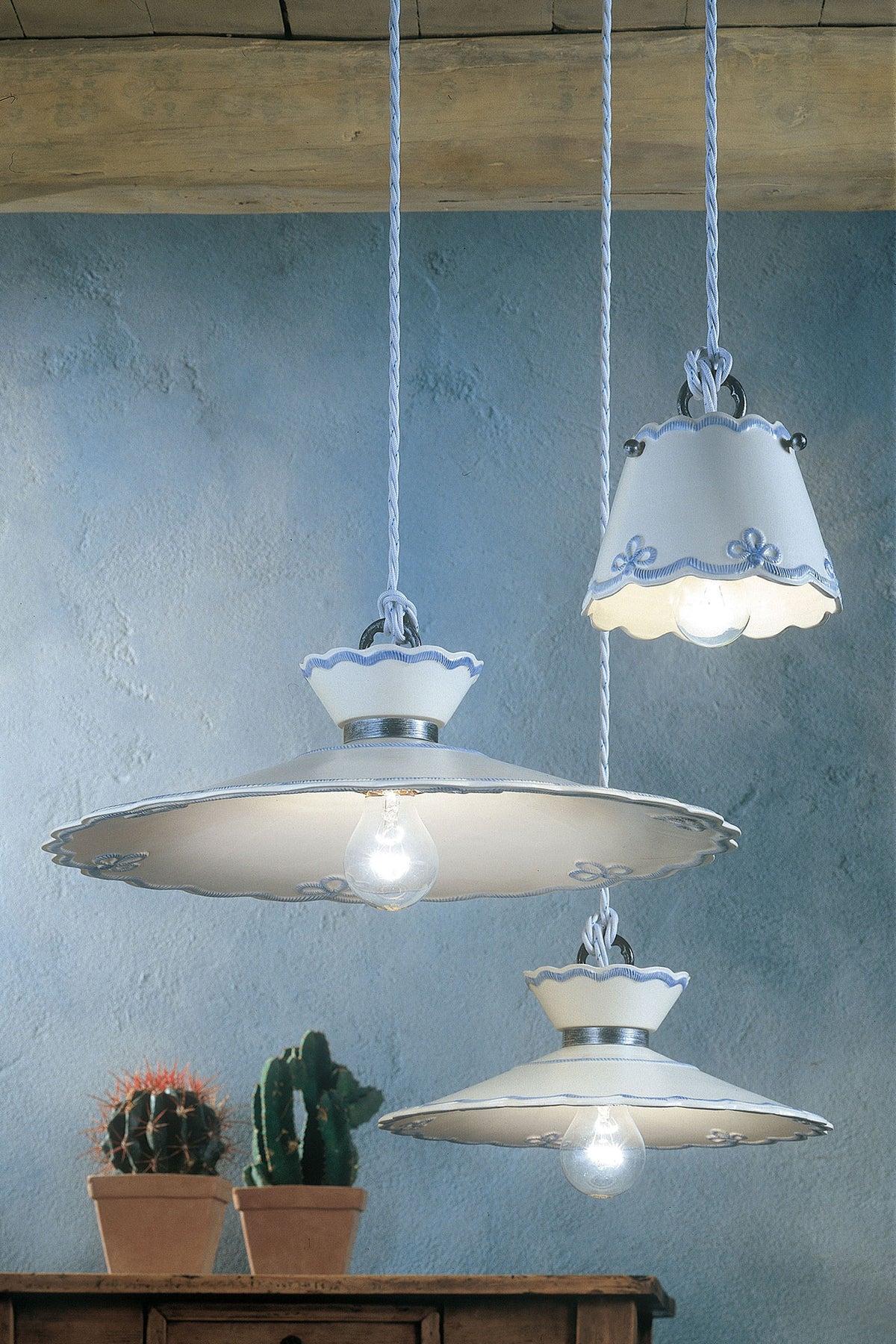 The Ravenna C892 Pendant Lamp belongs to the Ferroluce Classic Collection, a line dedicated to traditional Italian craftsmanship and a refined, rustic aesthetic. The lamp's design is specifically intended to evoke nostalgia and classic elegance. The ceramic diffuser often features intricate, delicate hand-decoration reminiscent of the embroidery found on antique bridal trousseaux, lending a unique, artisanal charm to each piece. This Ravenna C892 pendant lamp provides direct, diffused downward lighting, making it an ideal fixture for task and ambient illumination. It is perfectly suited for lighting dining tables, kitchen islands, or a cozy corner in a living space. Ferroluce is well-known for offering extensive customization options, allowing you to tailor the lamp to your specific decor: You can typically choose from several glossy ceramic colors or select a beautiful hand-painted decoration (such as the frequently shown FBL - Blue decoration). This level of customization ensures each piece is truly unique and perfectly tailored to the client's preference.