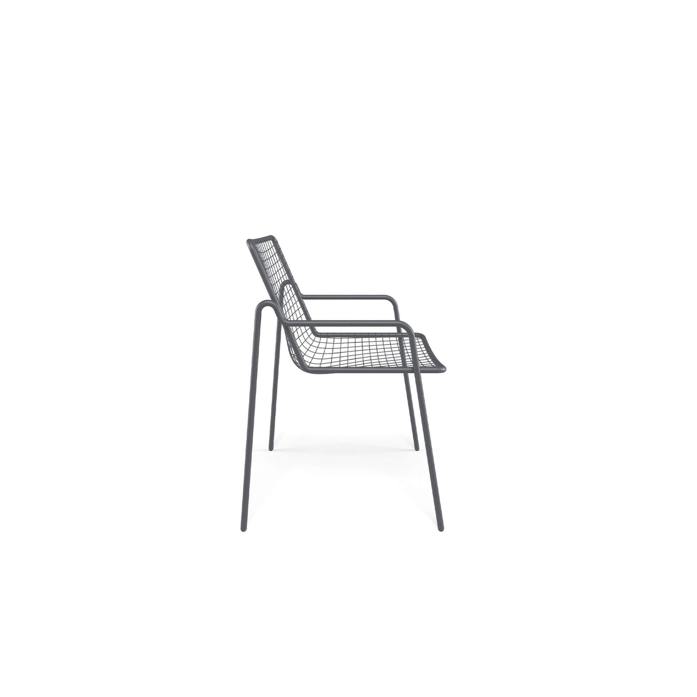 The EMU Rio R50 Stackable Chair with Armrests, sold in sets of two, is a stylish and practical outdoor seating option. The Rio R50 Stackable Lounge Chair is a versatile seating solution that includes a dining chair, armchair, lounge armchair, swing armchair, stool, and coffee table. The RIO R50 Stackable Lounge Chair is constructed with a frame made of ASFORM steel tube, known for its high-quality steel and excellent mechanical performance, providing high resistance to weight. The manufacturing process creates a distinctive letter R design, visible at the junction between the seat and backrest. Like all EMU products, it undergoes a cataphoresis pretreatment followed by a thermosetting powder coating treatment to ensure a uniform paint layer in terms of thickness, with high adherence and resistance. Nylon feet supports make it easy to move and protect the product. The EMU Rio R50 Stackable Chair with Armrests combines modern design, durability, and practicality, making it a great addition to any outdoor lounge space.