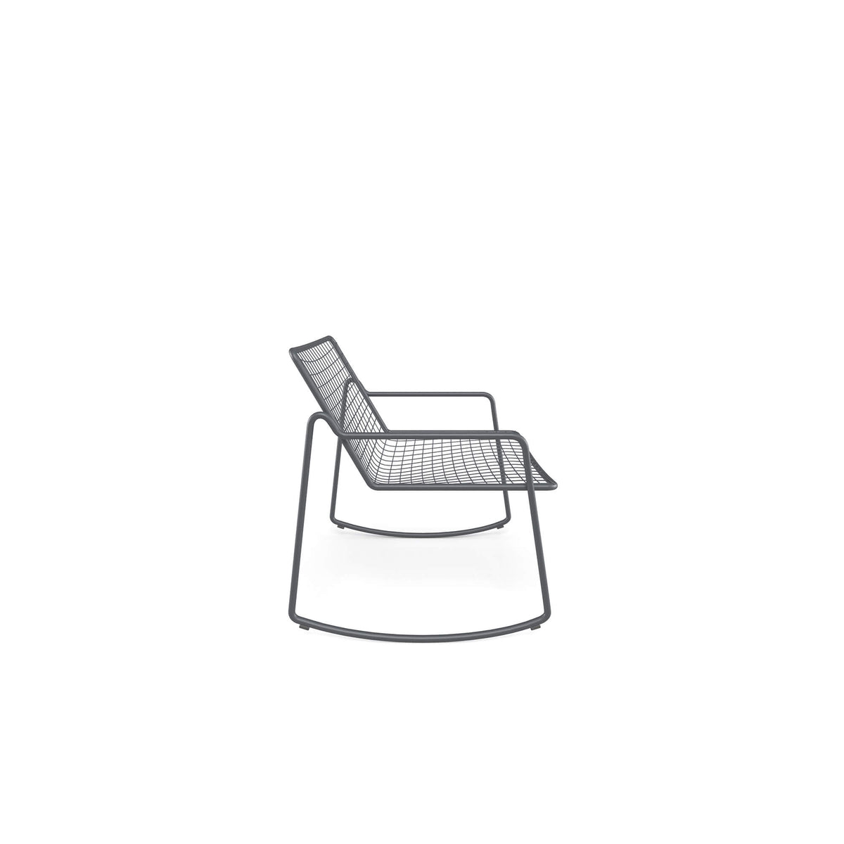 The EMU Rio R50 Swing Lounge Chair is a distinctive piece within the Rio R50 collection, offering a unique blend of style and relaxation. The Rio R50 Swing Lounge Chair consists of a range of seating options, including a dining chair, armchair, lounge armchair, swing armchair, stool, and coffee table. The Rio R50 Swing Lounge Chair's frame is made of ASFORM steel tube, which is a high-quality steel known for its excellent mechanical performance and high weight resistance. The letter “R” is produced during the manufacturing process, which is visible at the junction between the seat and backrest. Like all EMU products, the RIO R50 undergoes a cataphoresis pretreatment and thermosetting powder coating treatment, creating a uniform and thick layer of paint that is highly resistant. The nylon feet supports make it easy to move and protect the product. The EMU Rio R50 Swing Lounge Chair offers a luxurious and relaxing outdoor seating experience, combining modern design with durable materials and a unique swinging feature.