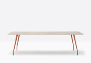Introducing the Rizz TRZ Outdoor Dining Table by Pedrali, an extraordinary piece of design by Robin Rizzini. With a name that suggests charm and elegance, Rizz perfectly encapsulates a sophisticated, minimalist aesthetic built for luxurious outdoor environments. The defining feature of the Rizz table is its masterful use of aluminum. The structure delivers exceptional strength while maintaining a visual and actual lightness. A subtle structural solidity is concealed beneath the tabletop, ensuring maximum stability without compromising the clean, pure lines of the design. The table’s elegance culminates in the four tapered, die-cast aluminum legs. Starting with a strong triangular section, they seamlessly transition into a sinuous curve before thinning into a round section that rests delicately on the floor. This fluid geometry is directed toward the center of the tabletop, a thoughtful design detail engineered to optimize seating space and enhance guest comfort. Crafted specifically for the outdoors, the Rizz TRZ utilizes weather-resistant aluminum and a highly durable top (such as solid laminate for external use). This robust construction ensures long-term resistance to the elements, guaranteeing durability and lasting refinement. Furthermore, the table is a testament to Pedrali's commitment to sustainability: it is made from recycled, durable aluminum and is designed to be fully disassembled for end-of-life recycling, marrying high design with environmental responsibility. The Rizz TRZ Outdoor Dining table transforms any terrace, patio, or garden into a contemporary haven for stylish, effortless outdoor entertaining.