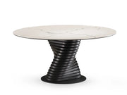 The Rotolo Round Dining Table is a stunning piece of Iconic Luxury Italian Design by Eforma. Designed by Archirivolto, the Rotolo Round Dining Table centers your dining space with a sense of hypnotic, futuristic energy defined by a dynamic and powerfully sculptural aesthetic. The unmistakable feature of the Rotolo collection is its dramatic base. This singular structure of painted metal creates a captivating, material vortex where the twisting of the volumes appears to dynamically rise and support the tabletop. This architectural element releases the full strength of the metal, providing rock-solid stability while serving as a compelling, dynamic focal point. Crowning this distinctive foundation is the round tabletop, which offers an intimate and perfectly balanced dining experience, ideal for conversation and gathering. Available in various luxurious finishes—including ceramic, glass, wood, or marble—the round top is especially striking. For enhanced functionality and luxury, it can even be paired with an optional Lazy Susan revolving tray.