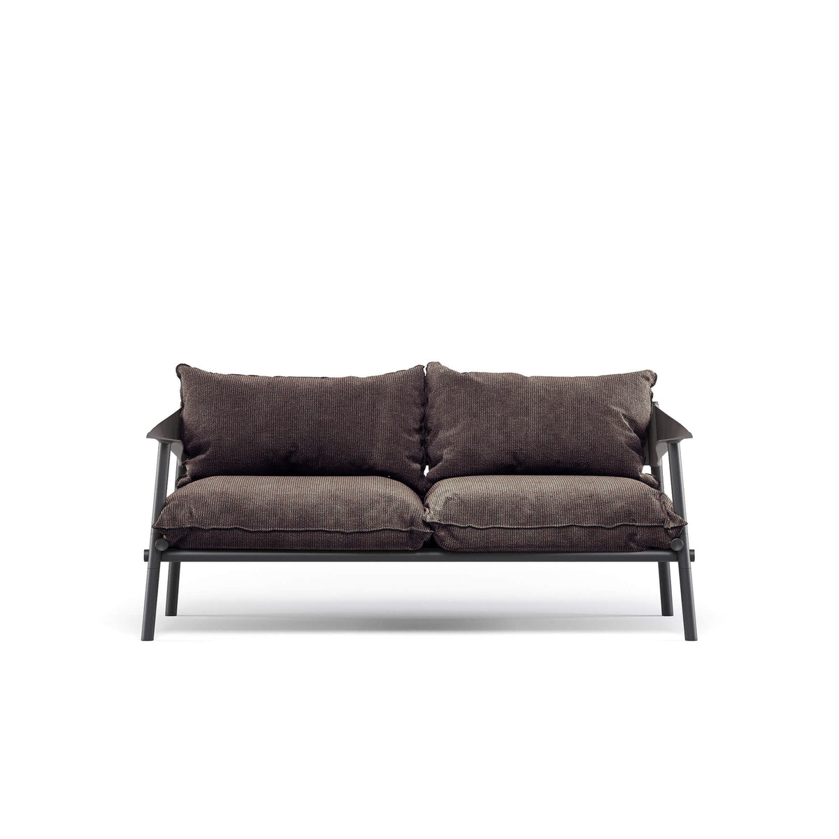 The Terramare 2 Seater Sofa is a luxurious outdoor seating option that embodies both style and comfort. The Terramare 2 Seater Sofa personal settings outdoors. It features attractive shapes and large dimensions, along with a complete range of furniture for dining and living areas. The main characteristic of this collection is the die-cast aluminum core, which resembles the basic system of binding cane stalks together, making it unique. The elegant armchairs and tables blend in with the essential lines, style, and design of the sofas, creating highly attractive dining areas. The material mix of Terramare 2 Seater Sofa is innovative and original, with eco-leather backs sporting vintage details, aluminum and stoneware tops, and colourful, water-repellent outdoor fabrics.