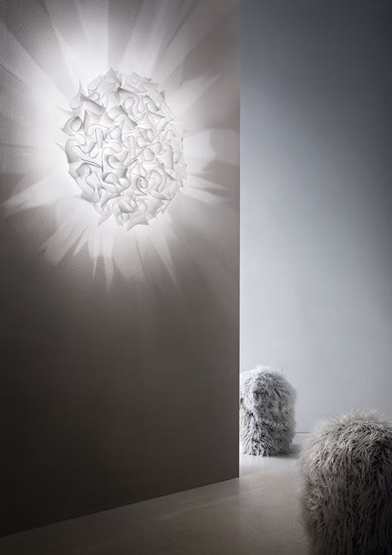 The Veli Couture Ceiling Wall Lamp by Slamp is a refined fusion of fashion and light, designed by Adriano Rachele to bring the elegance of haute couture into everyday interiors. Inspired by the delicate folds of fabric, this lamp transforms ceilings and walls into luminous canvases, radiating warmth and sophistication. The lamp’s sculptural silhouette recalls the artistry of tailored garments, with intricate folds that diffuse light in a soft, enveloping glow. The Veli Couture Ceiling Wall Lamp finish adds a luxurious touch, making the lamp a statement piece that adapts seamlessly to both modern and classic spaces. It ensures efficient illumination without compromising atmosphere. Available in multiple sizes, the Veli Couture is perfect for bedrooms, living rooms, dining areas, or boutique hotels where lighting doubles as décor.